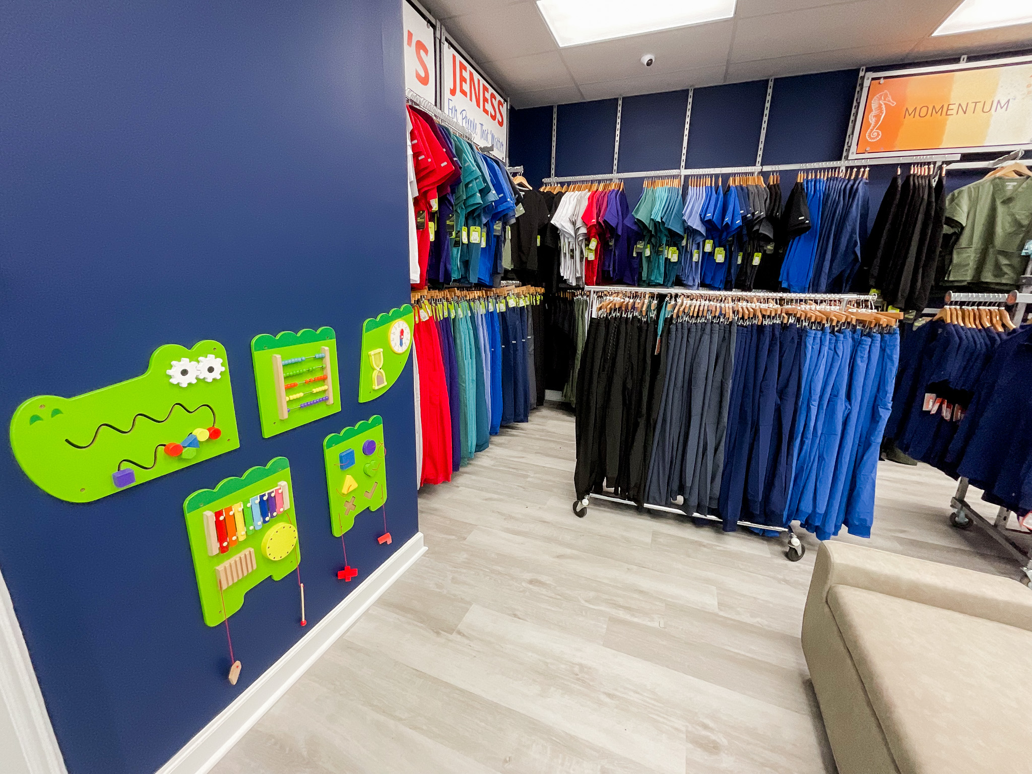 Jeness Uniforms has been a part of the Hampton Roads Community for over 75 years. As the area grows and changes, we see a need to grow within our community. We have several partnerships with local school districts and businesses. While our specialty is scrubs and medical accessories for everyone, we also provide corporate apparel and uniforms for hospitality which includes custom embroidery. We look forward to celebrating our Ribbon Cutting on Friday, September 8th at 9:45am and our Grand Opening on Saturday, September 9th from 10am-6pm.